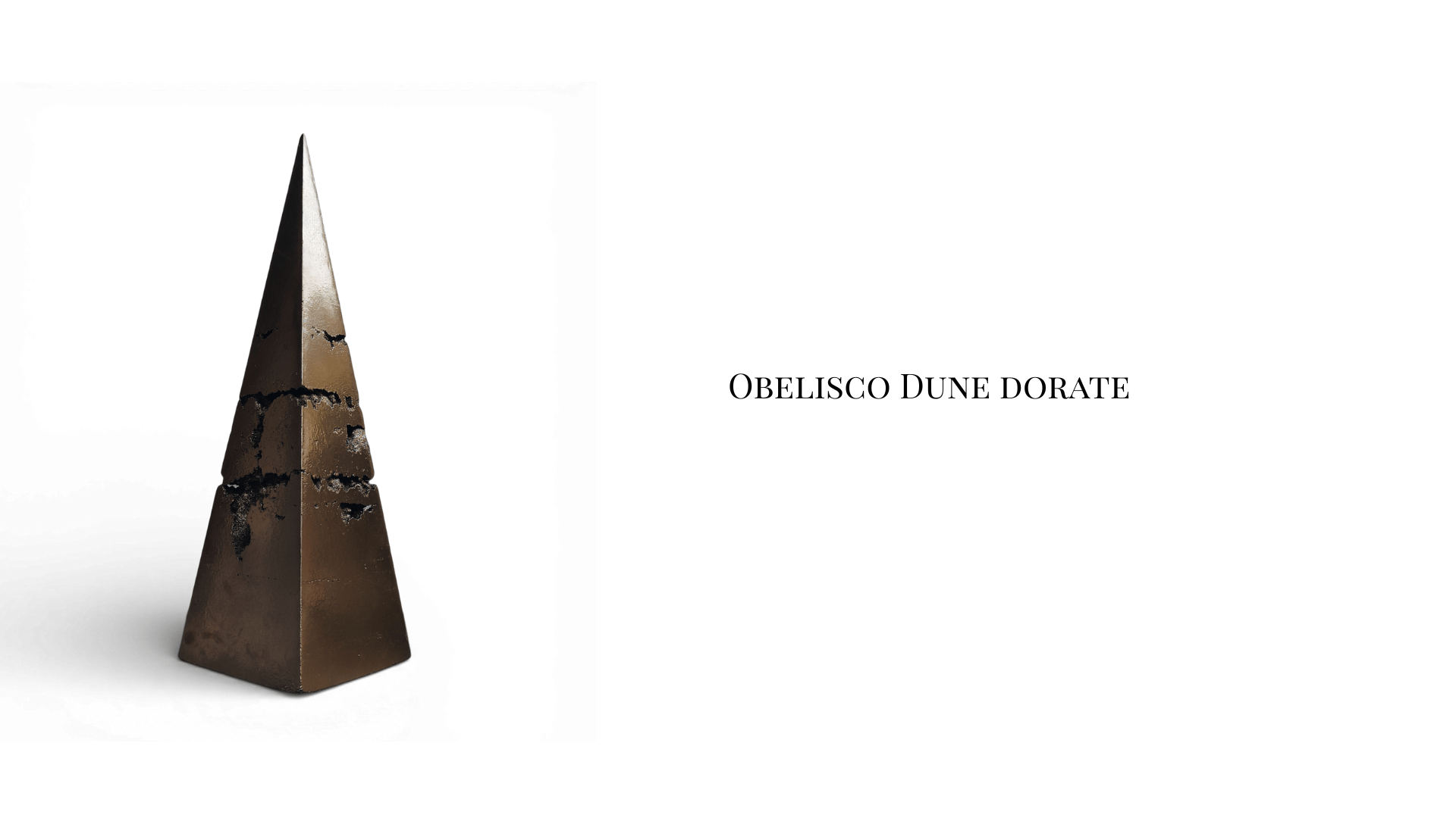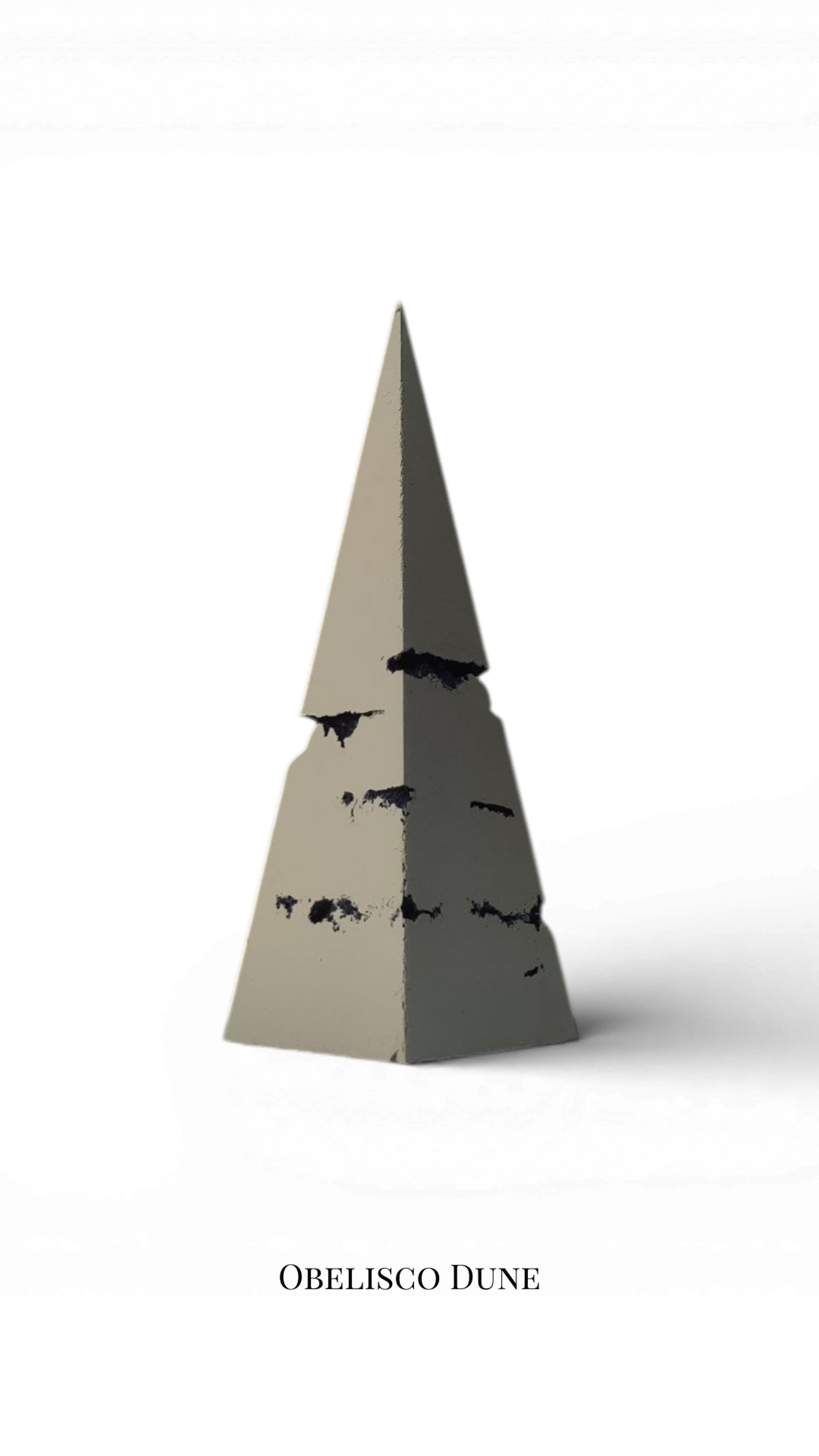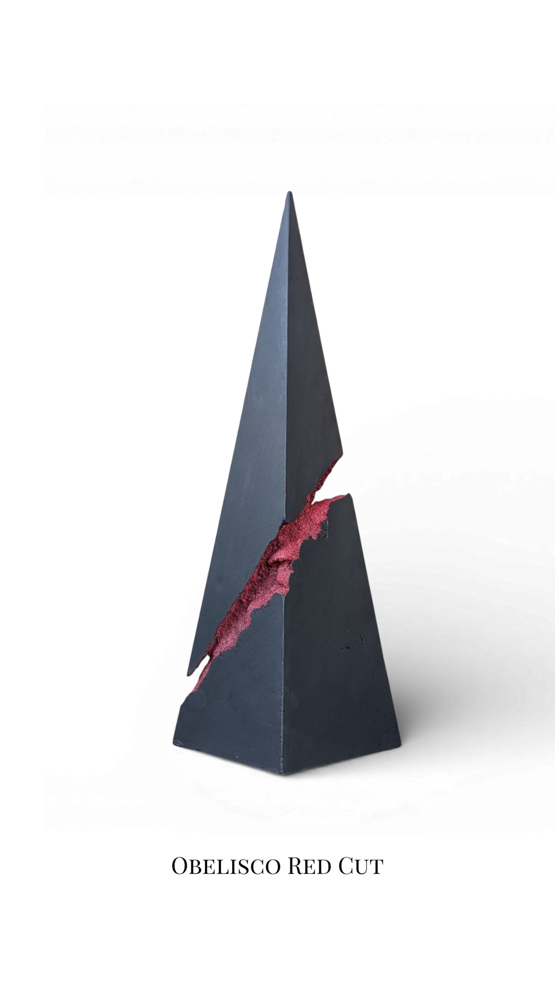 Consiste in un prisma piramidale, interrotto a tre quarti da una porzione cava. Considero quest'opera una rivincita dell'Io sulle peripezie dell'esistenza, ma anche un anelito innato verso l'alto. Verso una metamorfosi della forma in pura energia. Materia che si fa spirito. La Porzione cava che interrompe la corsa della forma verso la vetta si connota come un insieme di parti che, inutilizzate, rimangono impresse come tracce vuote delle esperienze passate.